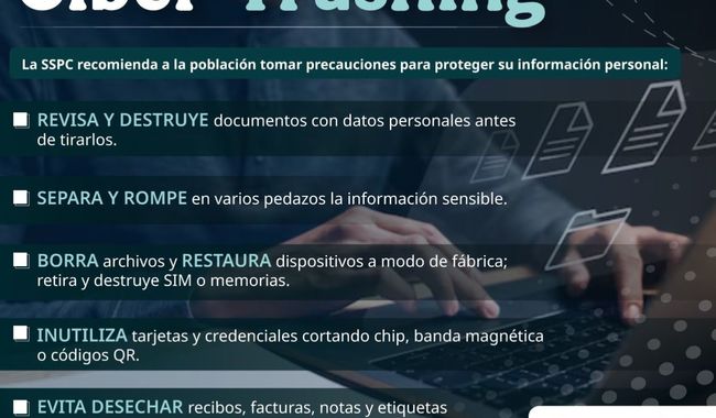 La Secretaría de Seguridad y Protección Ciudadana (SSPC), a través de la Unidad de Inteligencia, Investigación Cibernética y Operaciones Tecnológicas, brinda recomendaciones para evitar posibles fraudes y robo de datos mediante la obtención de información sensible a partir de documentos, dispositivos o comprobantes de pago que se desechan sin las medidas de seguridad adecuadas, fenómeno conocido como “Trashing”.