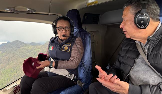 La secretaria y el mandatario estatal sobrevolaron los municipios de Tianguistengo, Tenango de Doria, Huehuetla y San Bartolo Tutotepec.