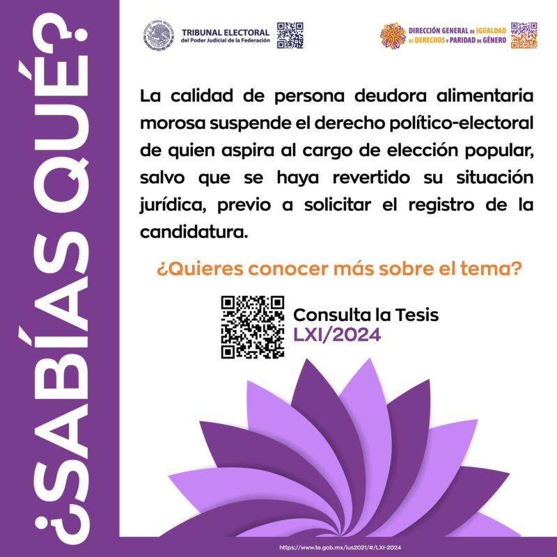 Te invitamos a consultar la Tesis LXI/2024, relacionada con el requisito de elegibilidad en los casos de personas deudoras alimentarias.