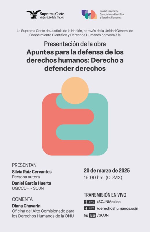 Suprema Corte de Justicia de la NaciónInfografías Te invitamos a la presentación de la obra “Apuntes para la defensa de los derechos humanos: Derecho a defender derechos». Por Araceli Bastida - marzo 18, 2025 0 FacebookTwitterPinterestLinkedinReddItEmailWhatsAppTelegramVK