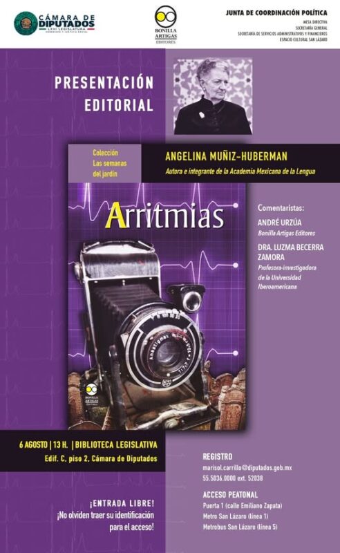 Inicio Camara de Diputados Infografías Te invitamos a la presentación del libro “Arritmias” de Angelina Muñiz-Huberman, autora...
