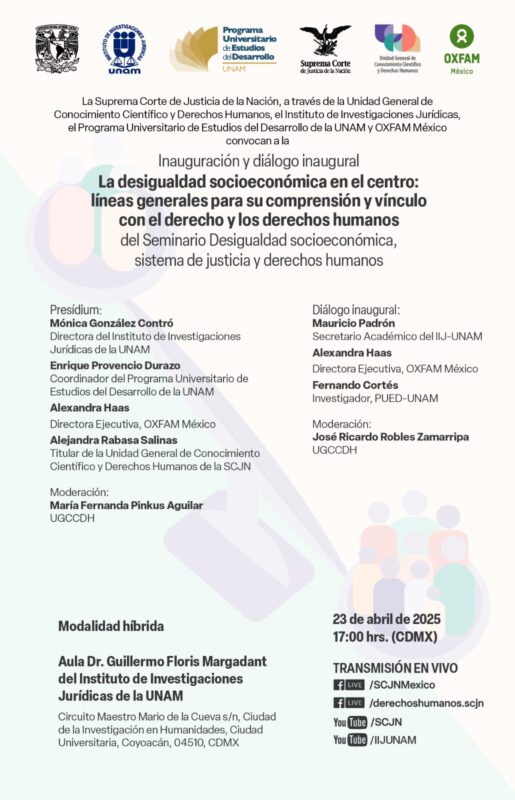 Te invitamos a participar en el Seminario sobre Desigualdad Socioeconómica, Sistema de Justicia y Derechos Humanos