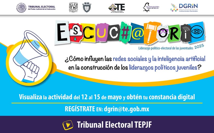 Tribunal Electoral del Poder Judicial de la FederaciónInfografías Te invitamos a ver el Escuchatorio, realizado en la Facultad de Derecho de la UNAM. Por Araceli Bastida - mayo 12, 2025 0 FacebookTwitterPinterestLinkedinReddItEmailWhatsAppTelegramVK