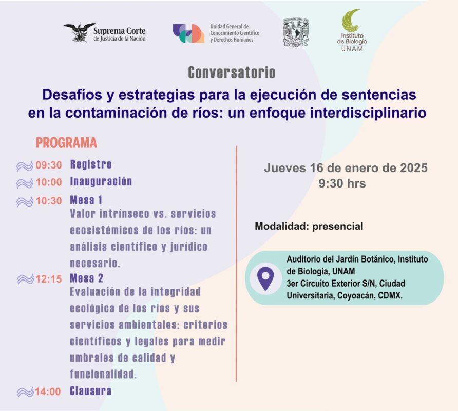 Suprema Corte de Justicia de la NaciónInfografías Te invitamos al conversatorio «Desafíos y estrategias para la ejecución de sentencias en la contaminación de ríos: un enfoque interdisciplinario». Por Araceli Bastida - enero 11, 2025 0 FacebookTwitterPinterestLinkedinReddItEmailWhatsAppTelegramVK