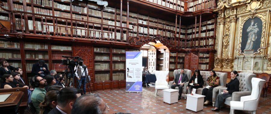 En la biblioteca Palafoxiana, la primera de carácter público en América Latina, lugar reconocido por la UNESCO como “Memoria del Mundo”, ubicada en el centro histórico de la ciudad de Puebla, Guevara y Herrera y Bustillo Marín, con el acompañamiento de la consejera presidenta del Instituto Electoral del Estado de Puebla, Blanca Yassahara Cruz García, y el presidente del Tribunal Electoral del Estado de Puebla, Israel Argüello Boy, hablaron sobre la trascendencia de los textos ahí reunidos.