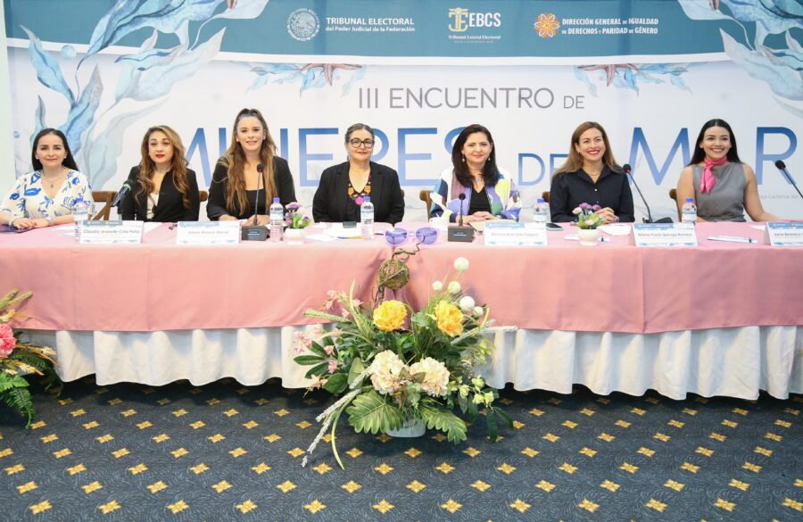 Durante este III Encuentro, organizado por el TEPJF y el Tribunal Estatal Electoral de BCS, se llevaron a cabo los paneles de análisis intitulados “El fortalecimiento de la perspectiva de género para la promoción de la igualdad de oportunidades en el acceso a cargos de toma de decisiones de las mujeres del mar” y “Acceso a la Justicia electoral con perspectiva de género”, además del conversatorio denominado “Mujeres del Mar. Liderazgos con perspectiva de género”.