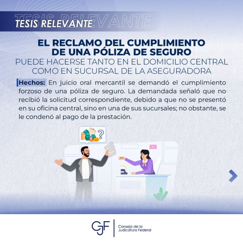 Consejo de la Judicatura FederalInfografías #TesisRelevante | El reclamo de una póliza de seguro puede hacerse en cualquier sucursal de la aseguradora, no solo en la oficina central. Por Araceli Bastida - octubre 28, 2024 0 FacebookTwitterPinterestLinkedinReddItEmailWhatsAppTelegramVK