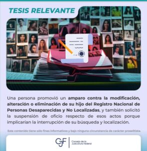 Consejo de la Judicatura FederalInfografías #TesisRelevante | Entérate en esta tesis aislada sobre la suspensión de oficio si se intenta eliminar del Registro Nacional de Personas Desaparecidas y No Localizadas a una persona de la que aún se desconoce su paradero Por Araceli Bastida - mayo 5, 2025 0 FacebookTwitterPinterestLinkedinReddItEmailWhatsAppTelegramVK