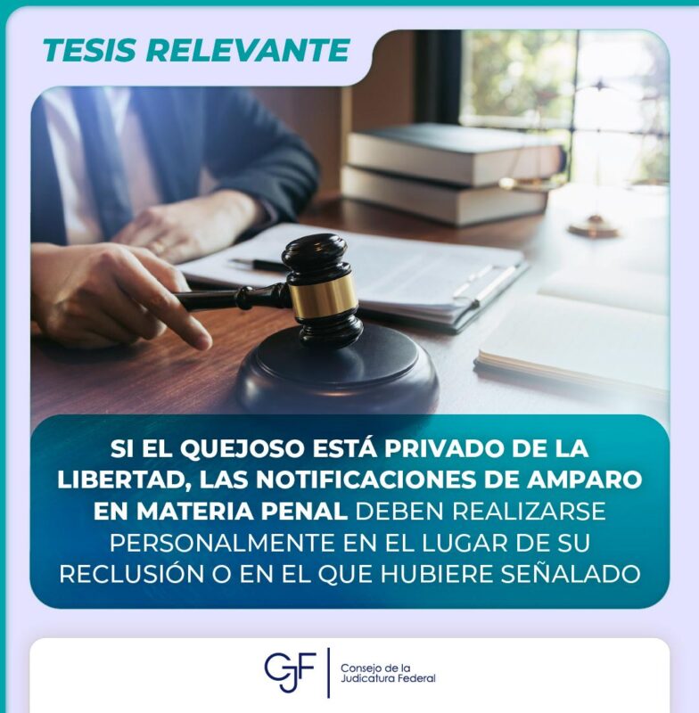 Consejo de la Judicatura FederalInfografías #TesisRelevante | Las notificaciones de amparo en materia penal de un quejoso privado de la libertad deben realizarse en el lugar de su reclusión o en donde haya indicado de manera personal Por Araceli Bastida - enero 6, 2025 0 FacebookTwitterPinterestLinkedinReddItEmailWhatsAppTelegramVK