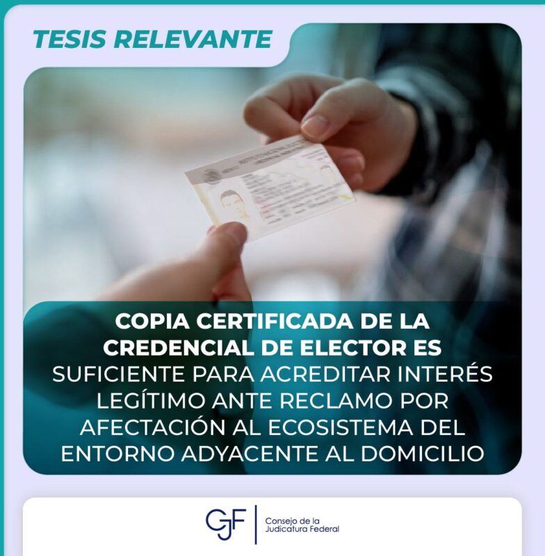 Consejo de la Judicatura FederalInfografías #TesisRelevante | Un Tribunal Colegiado determinó que una copia certificada de la credencial de elector es suficiente para acreditar un interés legítimo en amparo indirecto para defender el #Derecho a un medio ambiente sano. Por Araceli Bastida - enero 27, 2025 0 FacebookTwitterPinterestLinkedinReddItEmailWhatsAppTelegramVK