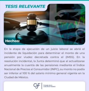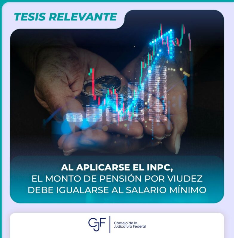 Consejo de la Judicatura FederalInfografías #TesisRelevante | Un Tribunal determinó que si el monto por viudez es menor al 100% del salario mínimo vigente, éste debe ser igualado. Por Araceli Bastida - enero 17, 2025 0 FacebookTwitterPinterestLinkedinReddItEmailWhatsAppTelegramVK