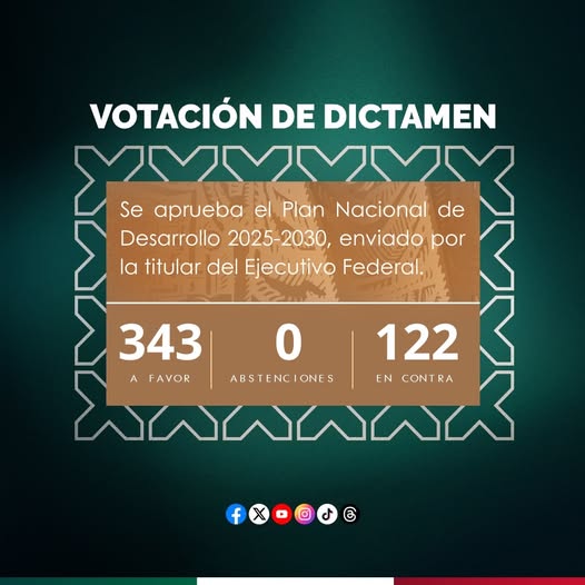 #ÚLTIMAHORA | El Pleno de la Cámara de Diputados aprueba el Plan Nacional de Desarrollo 2025-2030.
