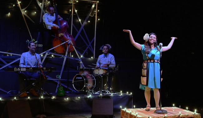 En el escenario, a la actriz la acompañan Los Swingones (Benjamín Escalona, Mark Slap, Pavel González, Luis Guerrero y Gerardo Olivares), que interpretan música en vivo, lo que hace vibrar cada rincón del teatro y provoca que las y los pequeños espectadores –y también los grandes– se dejen llevar por el ritmo.