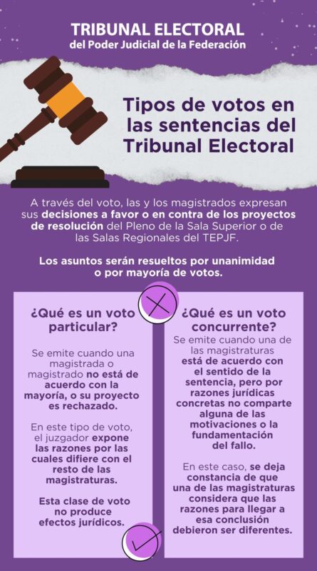 ¿Voto concurrente?, ¿voto particular? Te contamos sobre estos 2 tipos de votos que pueden emitir las magistradas y los magistrados del #TribunalElectoral en la resolución de los asuntos.