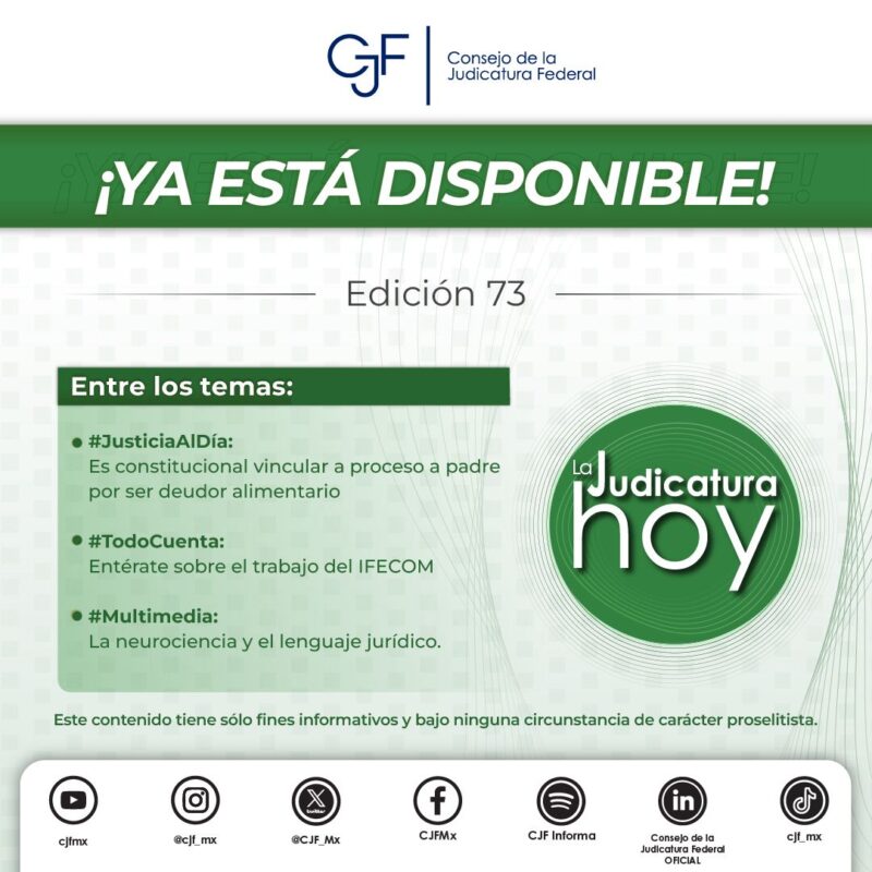 Inicio Consejo de la Judicatura Federal Infografías Ya puedes consultar la edición 73 de #LaJudicaturaHoy
