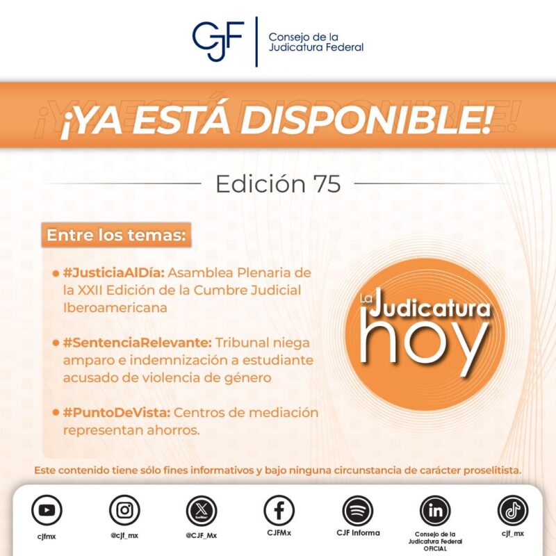 Consejo de la Judicatura FederalInfografías Ya puedes disfrutar de la edición 75 de #LaJudicaturaHoy. Por Araceli Bastida - mayo 22, 2025 0 FacebookTwitterPinterestLinkedinReddItEmailWhatsAppTelegramVK