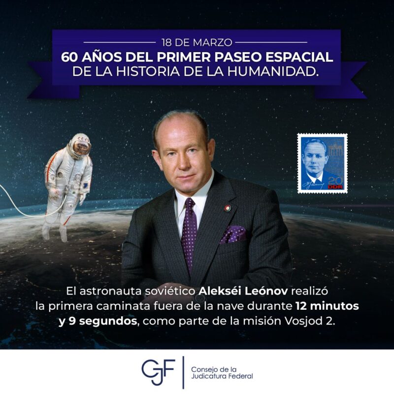 Consejo de la Judicatura FederalInfografías Alekséi Leónov realizó el primer paseo espacial y hoy se cumplen 60 años de su hazaña. Por Araceli Bastida - marzo 18, 2025 0 FacebookTwitterPinterestLinkedinReddItEmailWhatsAppTelegramVK